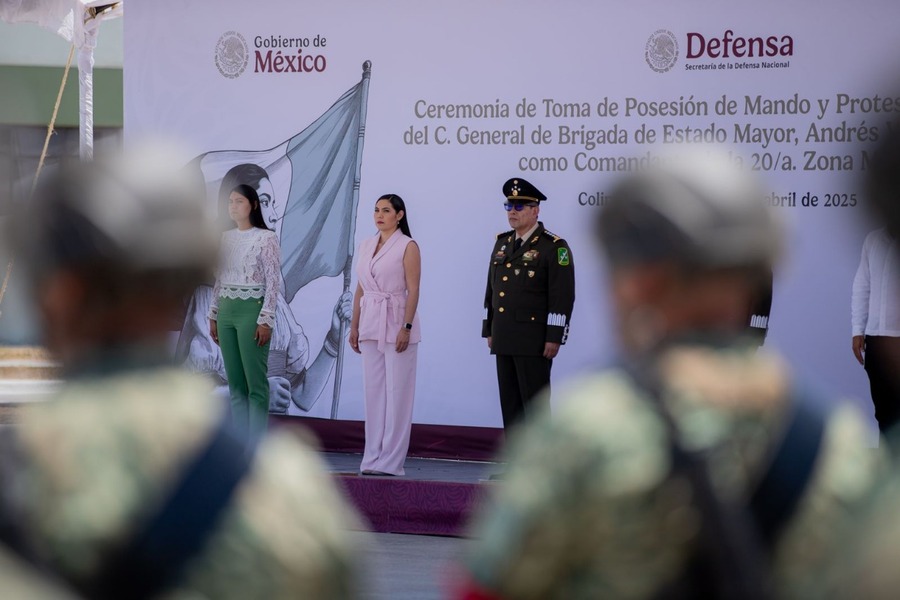 En la sede de la Vigésima Zona Militar, la mandataria colimense atestiguó el momento en que el General de División de Estado Mayor, Miguel Ángel Hernández Martínez, comandante de la Quinta Región Militar, tomó protesta y dio posición del mando como Comandante de esta Zona al General de Brigada de Estado Mayor, Andrés Valencia Valencia, en sustitución del General Juan Bravo Velázquez.
