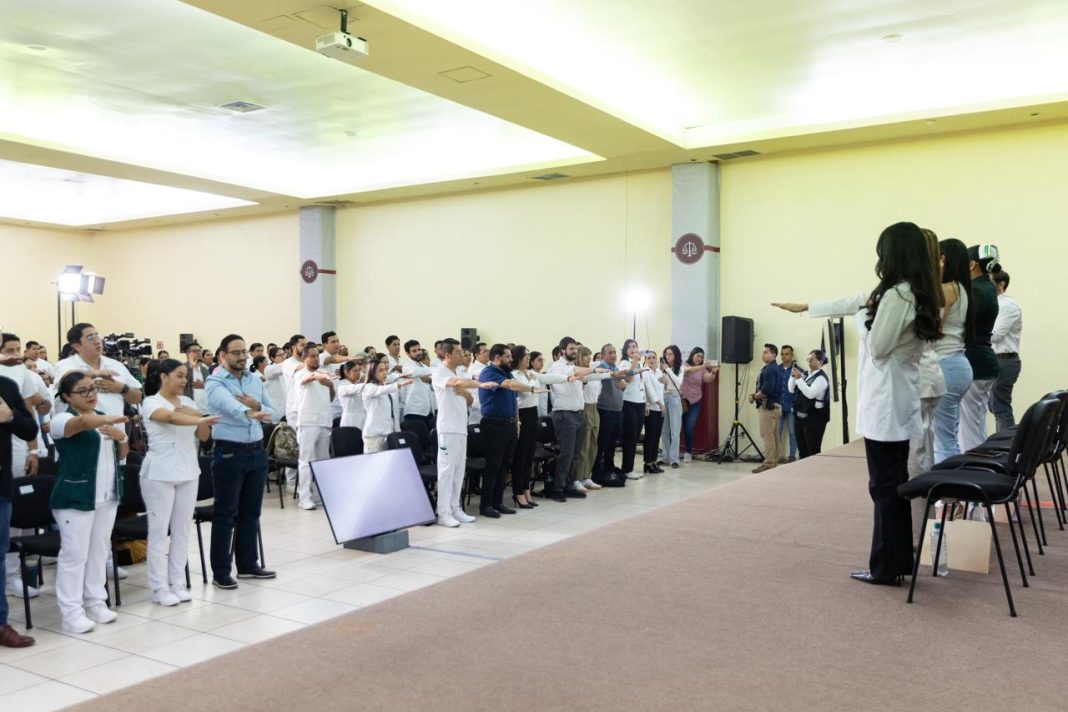 La titular de la Coordinación Estatal de los Servicios Públicos de Salud IMSS-Bienestar en Colima, Laura Yerania Dueñas Mendoza, explicó a los nuevos integrantes de este modelo de salud que con ello se asume un enorme compromiso con la vida, la ética, el servicio y con el pueblo de Colima; «en ese compromiso cuentan con una institución que está en transformación, con un gobierno estatal que respalda el fortalecimiento del sistema de salud y una estrategia nacional que coloca a las personas en el centro de las decisiones».