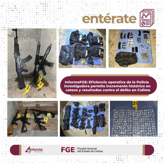 Durante el periodo comprendido del 01 de noviembre de 2024 al 31 de octubre, se ejecutaron 383 cateos, lo que representa un incremento del 5.8 % en comparación con el periodo anterior, posicionando a la Fiscalía General del Estado de Colima como una de las fiscalías de la zona occidente del país con mayor número de cateos realizados.