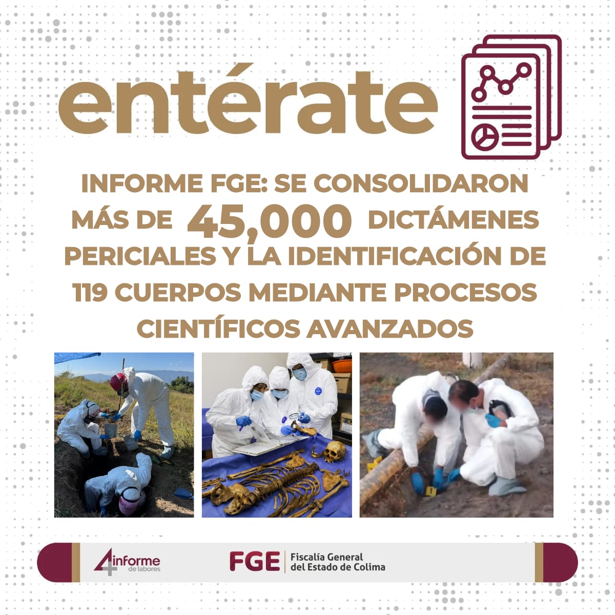COLIMA.- A través de un comunicado oficial, la Fiscalía General del Estado (FGE) informó que, en el marco de su compromiso con la modernización de la procuración de justicia y a través de la Dirección General de Servicios Periciales y Ciencias Forenses, ha logrado avances sustantivos en diversas áreas clave durante el periodo comprendido entre el 1 de noviembre de 2024 al 31 de octubre de 2025. Según el documento, la dependencia ha fortalecido su capacidad técnica y operativa en la investigación científica, la infraestructura analítica y el uso de tecnologías avanzadas.