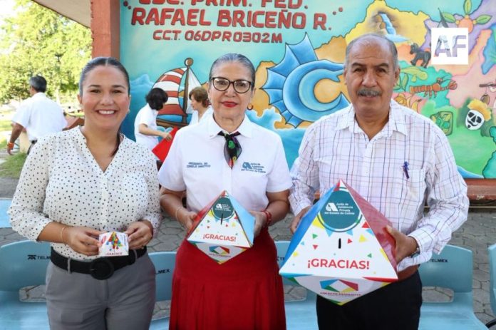 Explicó que, mediante los diamantes de cartón distribuidos en escuelas, las y los estudiantes podrán realizar aportaciones voluntarias destinadas a apoyar a personas con discapacidad, adultas mayores, pacientes que requieren atención de salud, así como quienes enfrentan situaciones de vulnerabilidad social o económica.