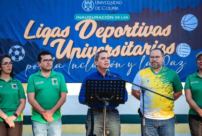 Este miércoles por la tarde, el rector de la Universidad de Colima, Christian Torres Ortiz Zermeño, inauguró la “Liga Universitaria de Fútbol Rápido: por la Inclusión y la Paz”, en la que participan 54 equipos de estudiantes de educación media y superior. La patada inaugural se dio en la cancha de la Unidad Deportiva Universitaria.