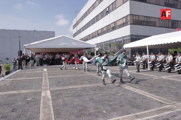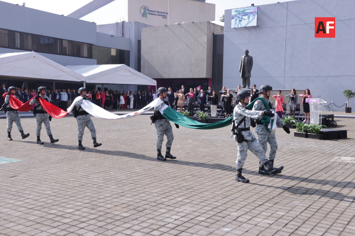 La ceremonia cívica de Honores a la Bandera contó con la participación de la Orquesta de Banda de Guerra y Escolta de la Guardia Nacional, de la coordinación estatal de la Ciudad de México.