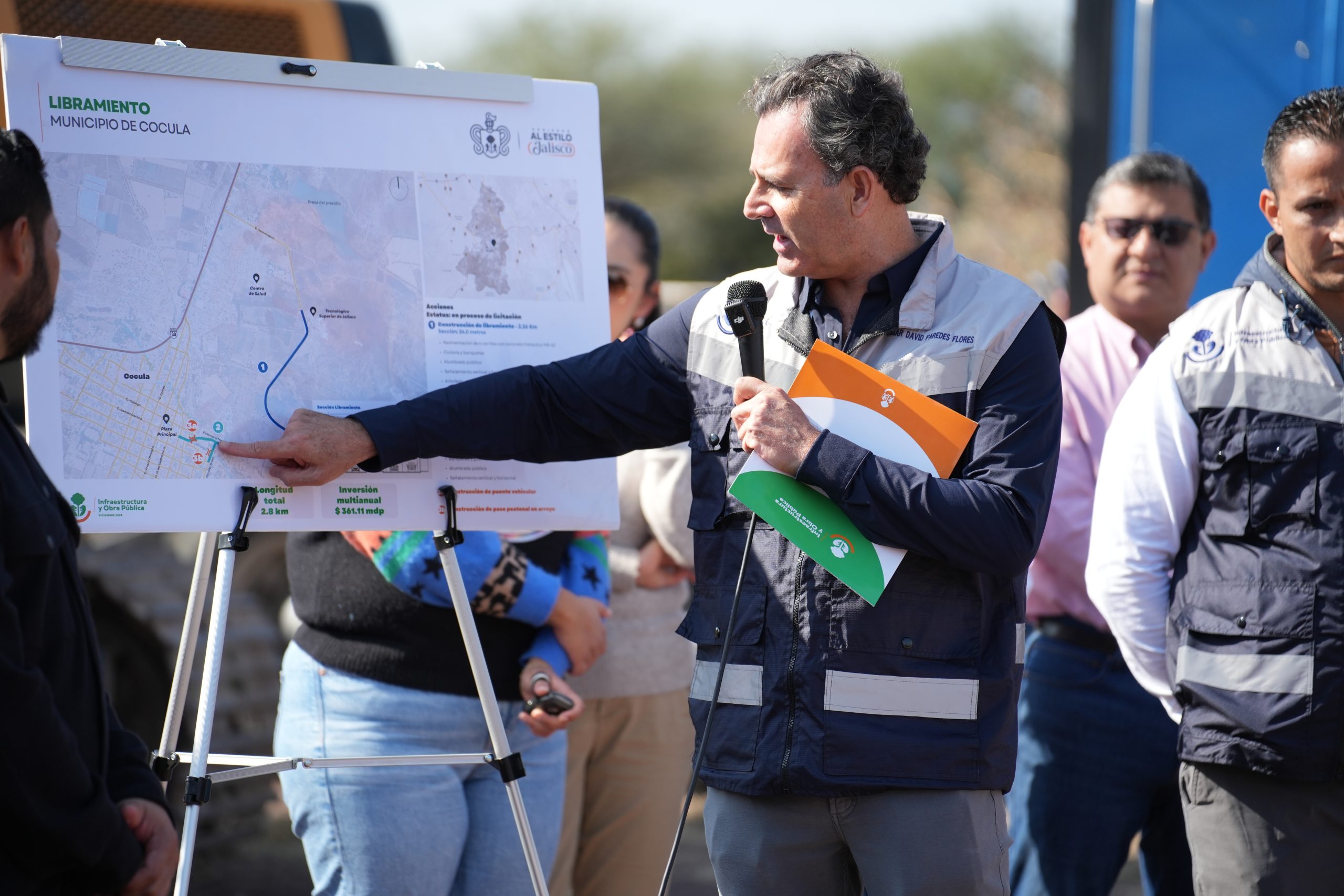 “Es un libramiento que viene entroncado desde la Carretera 80 Guadalajara- Barra de Navidad, de una parte que ya tiene asfalto— al Tecnológico Superior, y va a consistir en 2.26 kilómetros de longitud con una sección de 24 metros, con cuatro carriles, dos por sentido”, dijo Paredes Flores.