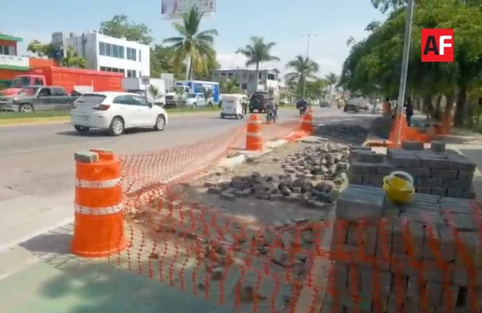 Manzanillo.- En el cruce del bulevar Costero Miguel de la Madrid con avenida La Audiencia, en Manzanillo, comenzaron los trabajos para modificar la ciclovía, de acuerdo con información obtenida por AFmedios.