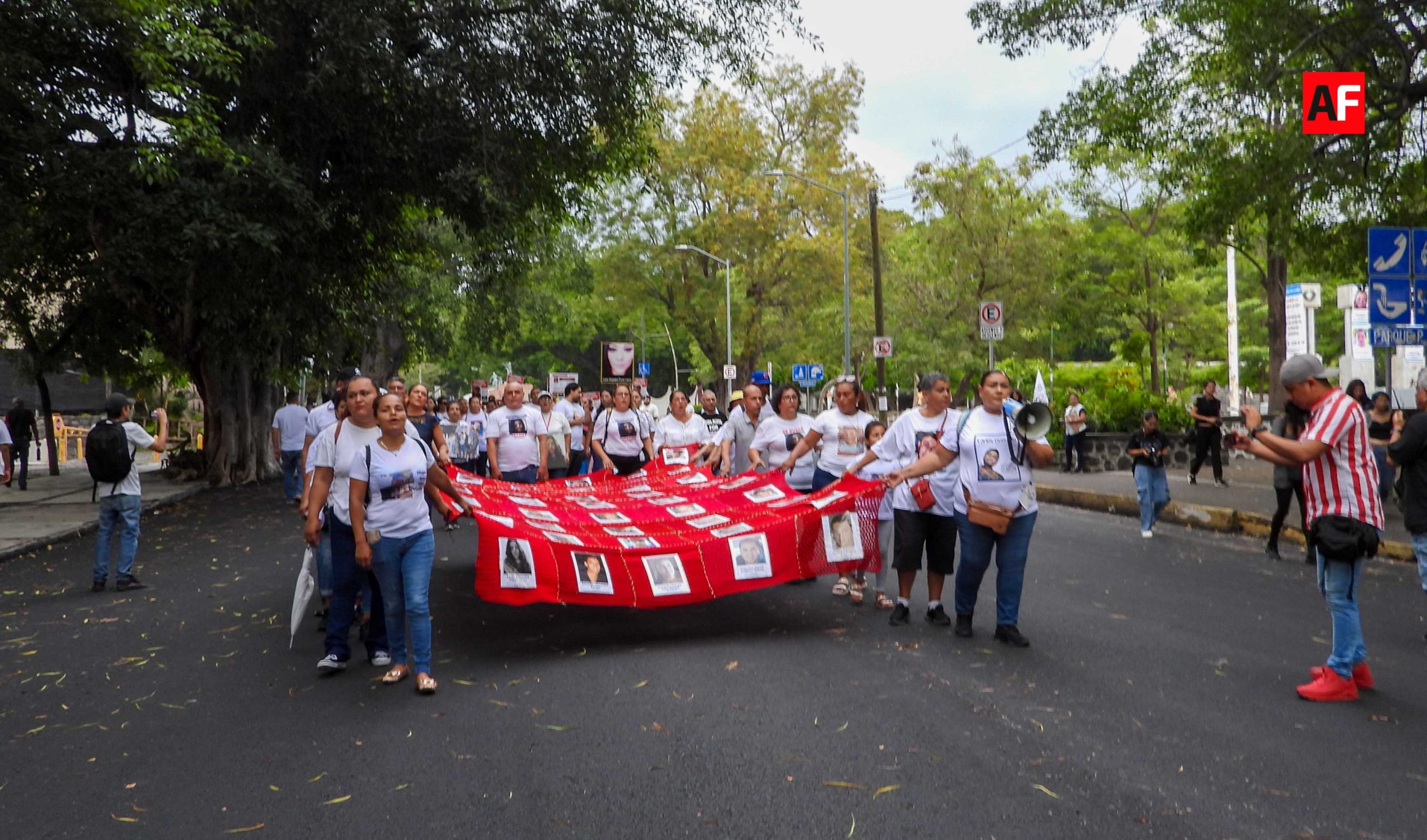 Luego de recorrer las calles desde la Plaza de los Desaparecidos Colima, por la Calzada Galván y Madero hasta llegar al Jardín de la Libertad, cientos de familias que portaban lonas y carteles de sus desaparecidos alzaron la voz para exigir que aparezcan; se dieron muestras de apoyo entre ellos y se repetían una y otra vez que no estaban solos, que los respaldaba la comunidad que ahora formaban, unidos por el mismo dolor.