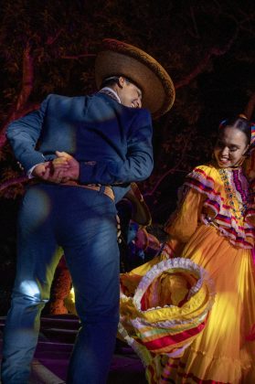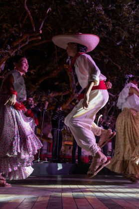 Posteriormente, los asistentes se reúnen frente al escenario principal para disfrutar de un espectáculo escénico formal, donde el Gran Ballet Nacional de México presenta una serie de cuadros inspirados en la identidad y tradición mexicana, abordando temas como los sones de hacienda, el cine de oro mexicano, la Revolución y la figura del charro como símbolo cultural.