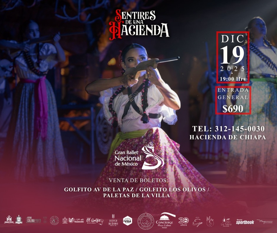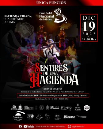 COLIMA. — El próximo 19 de diciembre, la histórica Hacienda Chiapa, en el municipio de Cuauhtémoc, será escenario de Sentires de una Hacienda, una experiencia escénica inmersiva presentada por el Gran Ballet Nacional de México, compañía con proyección nacional e internacional.