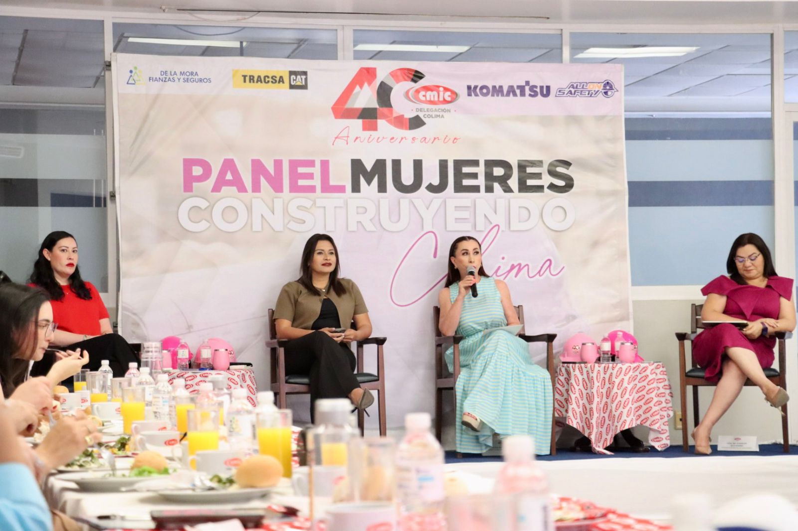En el panel Mujeres Construyendo Colima participaron también Marisol Neri León, Secretaria de Infraestructura, Desarrollo Urbano y Movilidad del Gobierno del Estado de Colima; Guadalupe Solís Ramírez, Presidenta Municipal de Cuauhtémoc, y María Fernanda Soto, Secretaria del Comité Directivo de la CMIC Colima.