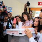 Colima.- En punto de las 9:30 horas, el candidato de la coalición PRI-PVEM-NA-PT, Ignacio Peralta Sánchez, llegó a la casilla donde emitió su voto, en compañía del presidente del Comité Directivo Estatal del PRI, Rogelio Rueda Sánchez y Manlio Fabio Beltrones, dirigente nacional del partido.