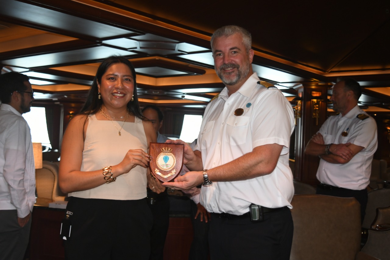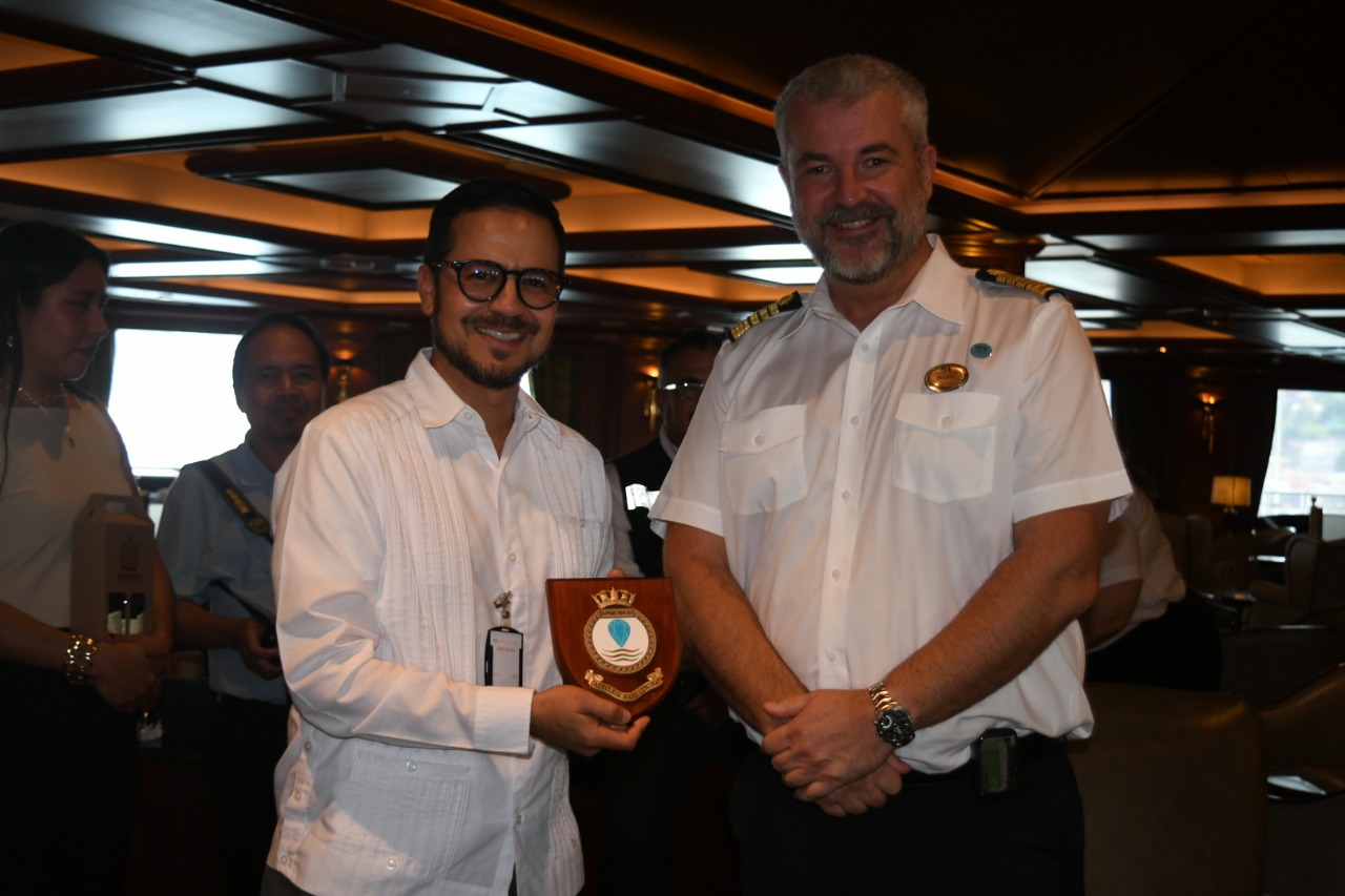 Durante su estancia, se llevó a cabo una ceremonia de intercambio de placas a la que asistió el subsecretario de Turismo, Jorge Padilla Castillo, reforzando los lazos de colaboración y hospitalidad entre la naviera y el puerto de Manzanillo.