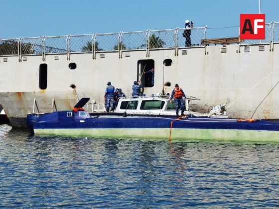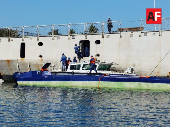 La embarcación semisumergible, junto con la embarcación militar Hidalgo que vigiló su traslado, atracó en la terminal naval de Las Brisas, para la realización de las diligencias correspondientes.
