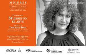 Para el jueves 28 de marzo a las 20:00 horas Lourdes Sosa entablará la conferencia «Mujeres en el arte» en Poliforum Cultural Mexiac.
