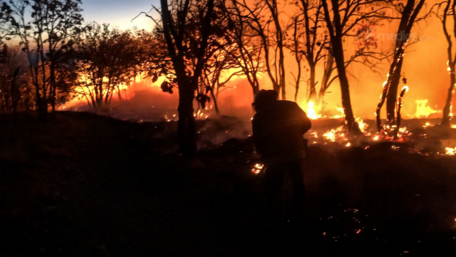 Jalisco / Carmen Aggi Cabrera.- Sesenta y nueve brigadistas forestales combaten desde un incendio que afecta la Reserva de la Biosfera Sierra de Manantlán desde la semana pasada y ha consumido más de 2 mil hectáreas.