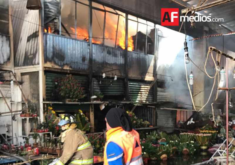 Ciudad de México.- Un incendió en el Mercado de Jamaica el área de bodegas y flores afectó a 25 locales sin reportar lesionados, únicamente se desalojo a mil 500 personas.