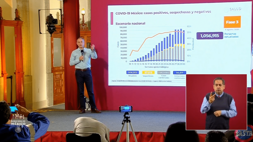 Ciudad de México.- De acuerdo al reporte de este 6 de agosto de la Secretaría de Salud del gobierno de México, las muertes por COVID-19 llegaron a 50 mil 517 de las cuales 819 ocurrieron en las últimas 24 horas.