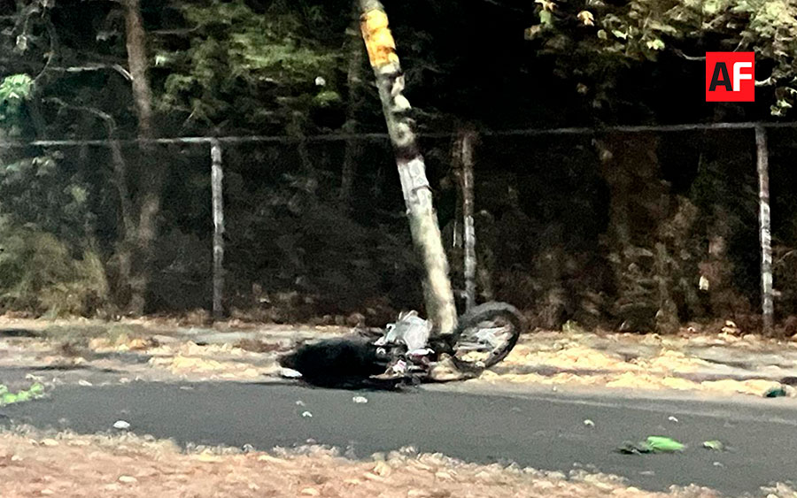 Villa de Álvarez, Colima.– La noche de este jueves 24 de abril, un motociclista resultó gravemente herido luego de perder el control de su unidad e impactarse contra un poste en la lateral del Tercer Anillo Periférico, a la altura del acceso norte del parque La Campana.