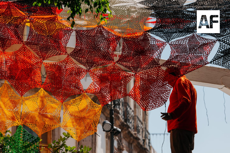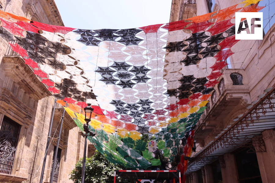 Guadalajara.- El talento artesanal de Etzatlán se hace presente en el corazón de la ciudad con la instalación de un mural aéreo en el andador de Pedro Moreno, entre Ramón Corona y Maestranza, en el Centro Histórico de Guadalajara, como parte de las atracciones turísticas que buscan enriquecer la experiencia de visitantes y locales.