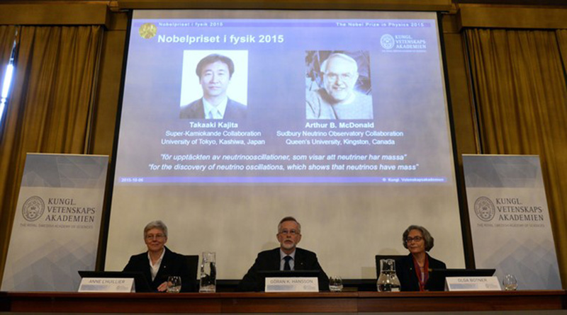 El japonés Takaaki Kajita y el canadiense Arthur B. McDonald ganaron el martes el Premio Nobel de Física 2015 por su descubrimiento de que los neutrinos, unas partículas subatómicas, tienen masa, abriendo un nueva ventana al estudio de la naturaleza fundamental del universo.