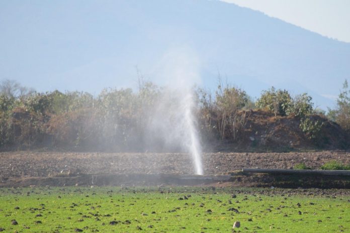 Los primeros reportes refieren que la fuga se presenta en un ducto que atraviesa por un campo de cultivo y al momento presenta un chorro de unos tres metros de altura.