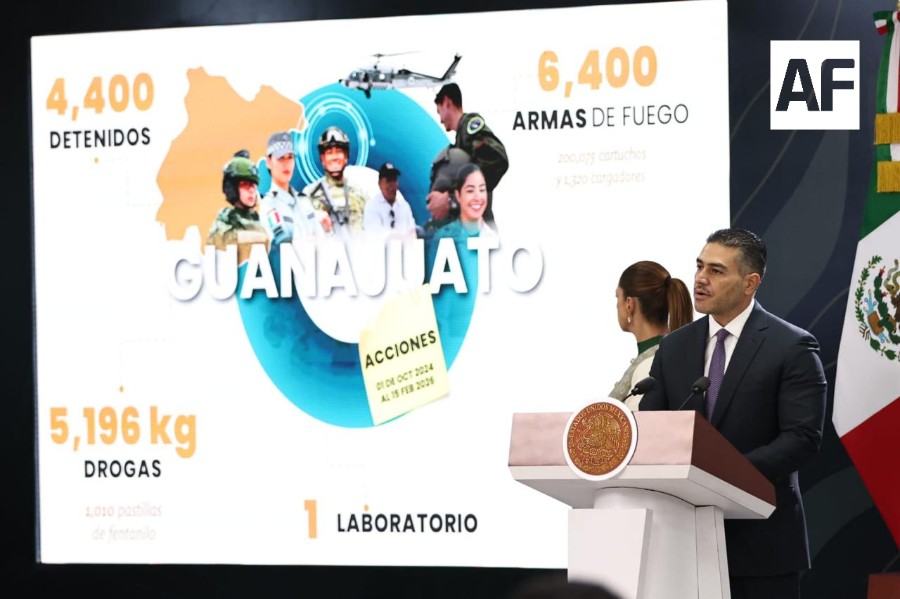 Harfuch subrayó que, por instrucciones de la Presidenta, en febrero de 2025 se reforzó la presencia del Ejército y la Guardia Nacional en Guanajuato, así como células de investigación enfocadas en la captura de generadores de violencia.