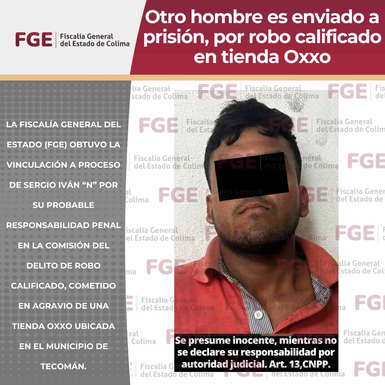 TECOMÁN.- La Fiscalía General del Estado (FGE) obtuvo la vinculación a proceso de Sergio Iván “N” por su probable responsabilidad penal en la comisión del delito de robo calificado, cometido en agravio de una tienda Oxxo ubicada en el municipio de Tecomán.