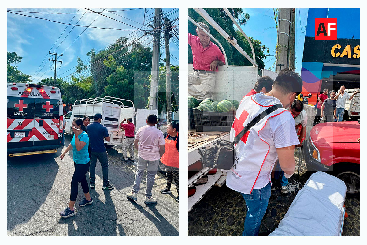 VILLA DE ÁLVAREZ.- La mañana de este sábado, un hombre resultó lesionado mientras descargaba mercancía de una camioneta, luego de que otro vehículo se impactara contra la parte posterior de la unidad, provocando que la persona fuera golpeada y sufriera diversas lesiones.