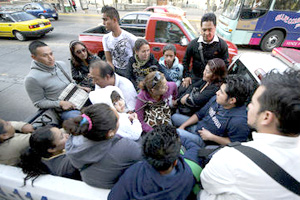 De forma espontánea, los conductores de autos privados ofrecían en los paraderos llevar a las personas que esperaban el transporte, sobreponiéndose al miedo provocado por los narcobloqueos de fines de agosto, por lo que evitaban subir a extraños a sus vehículos.