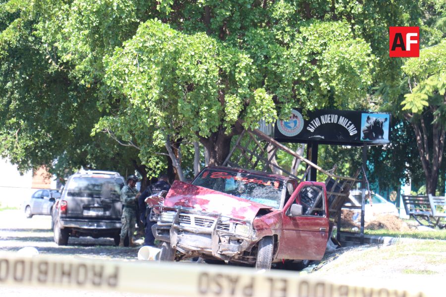 Asimismo, se reportó que el oficial que viajaba en la caja de la camioneta sufrió una lesión en la muñeca derecha al caer durante la colisión, mientras que los presuntos delincuentes fueron finalmente detenidos por los agentes.