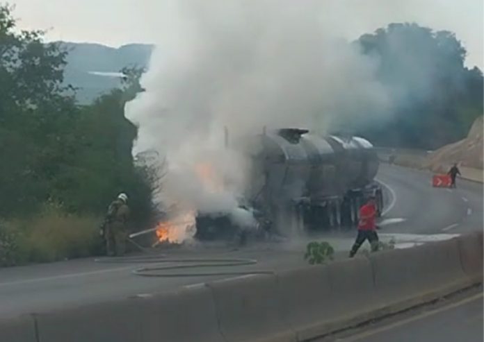 Cuantiosos daños materiales es el saldo preliminar del incendio de una pipa cargada de combustible, sobre la autopista Armería a Manzanillo, la mañana de este sábado 11 de noviembre, de acuerdo a fuentes policiales.