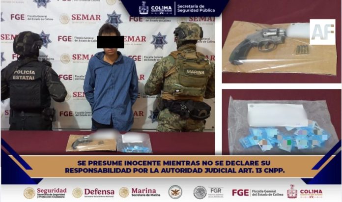 En atención a las labores permanentes que la Secretaría de Seguridad Pública (SSP) del Gobierno del Estado de Colima mantiene en coordinación con diversas corporaciones, elementos de la Policía Estatal Preventiva (PEP) aseguraron a un masculino por su probable participación en delitos contra la salud y violación a la Ley Federal de Armas de Fuego y Explosivos.