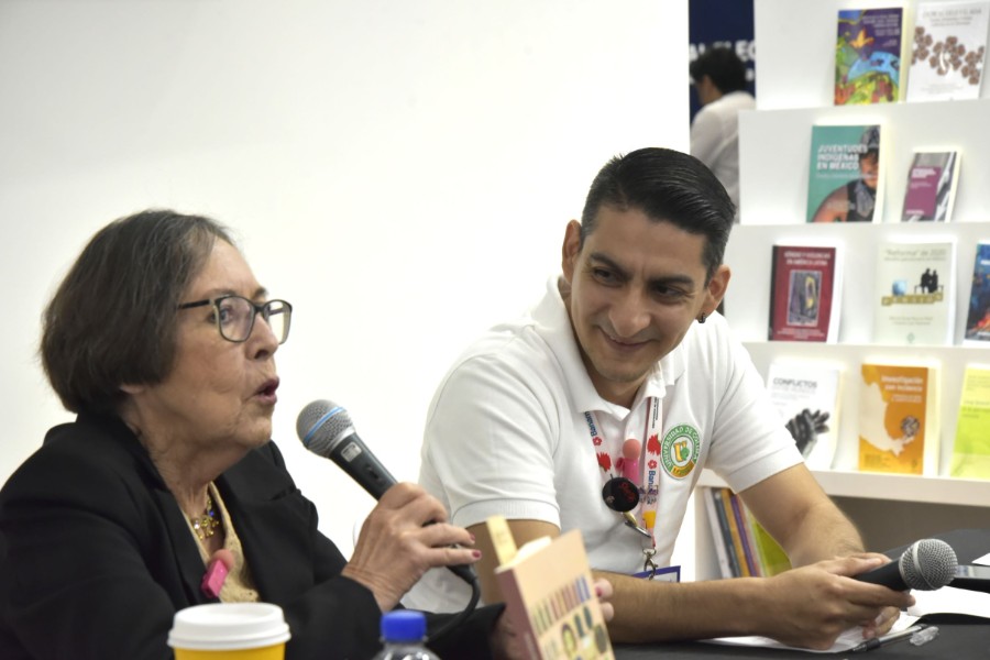 La presentación del libro consistió en un diálogo entre el poeta y editor universitario Miguel León Govea, quien trabajó directamente en la edición de la obra para la Universidad de Colima y la propia autora, Guillermina Cuevas.