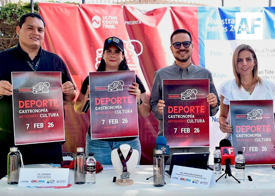 Colima.- Este jueves, el subsecretario de Turismo del Gobierno del Estado de Colima, Jorge Padilla Castillo; la presidenta municipal de Comala, Daniela Orozco Pineda, y la organizadora Carmina Aguilar, presentaron el ‘Nahual Trail’, un evento deportivo–cultural a realizarse el sábado 7 de febrero, en la comunidad de Suchitlán, donde al término de la carrera habrá actividades culturales y presentaciones artísticas.