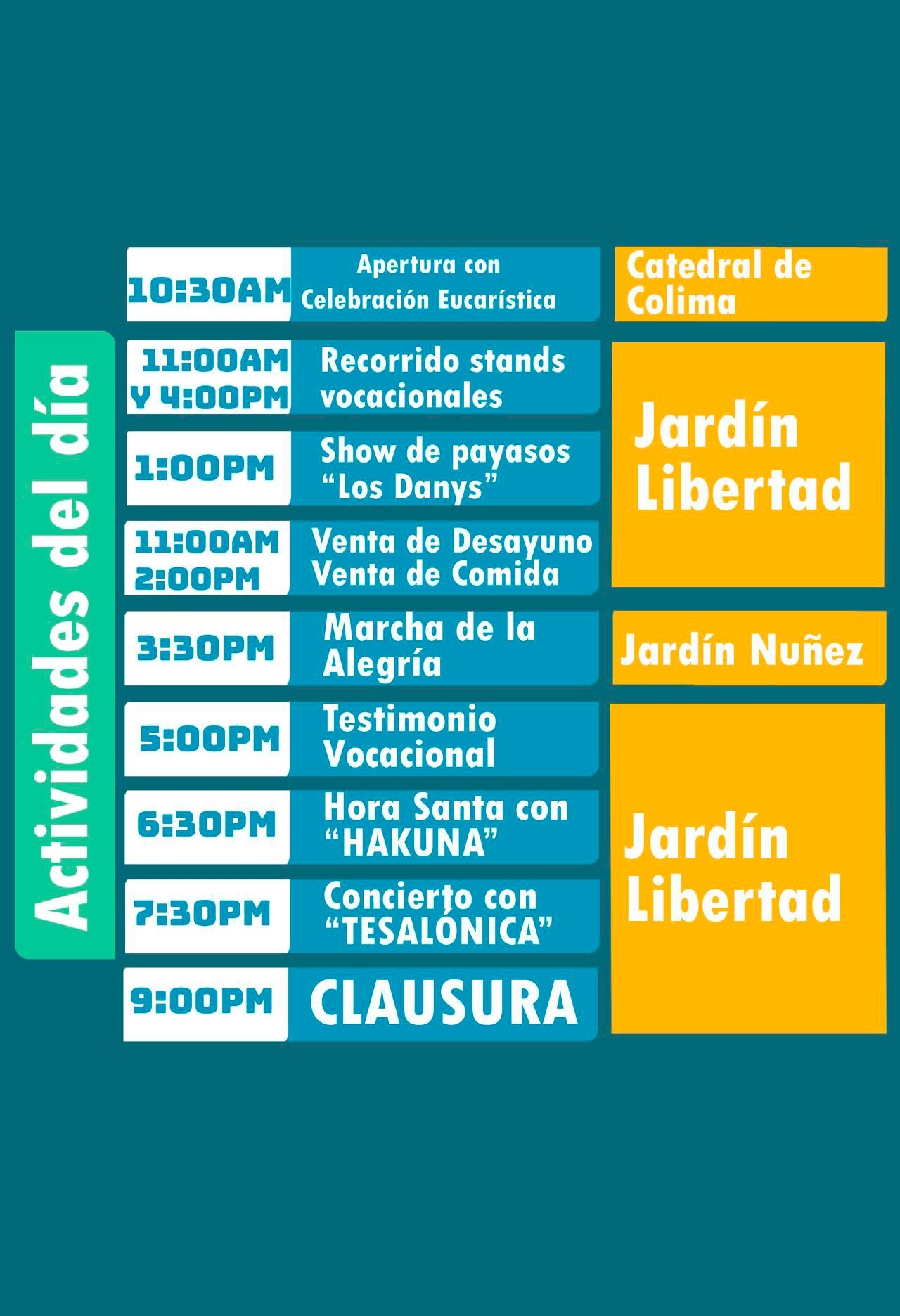 COLIMA.- La Diócesis de Colima anunció la realización de la Primera Feria Vocacional 2025, un evento que busca fomentar la cultura vocacional entre niños, adolescentes y jóvenes, y ofrecer un mensaje de esperanza ante el clima de inseguridad y violencia que atraviesa la entidad. La actividad se llevará a cabo el domingo 26 de octubre, con un programa que incluye celebraciones religiosas, actividades culturales y espacios de encuentro familiar.