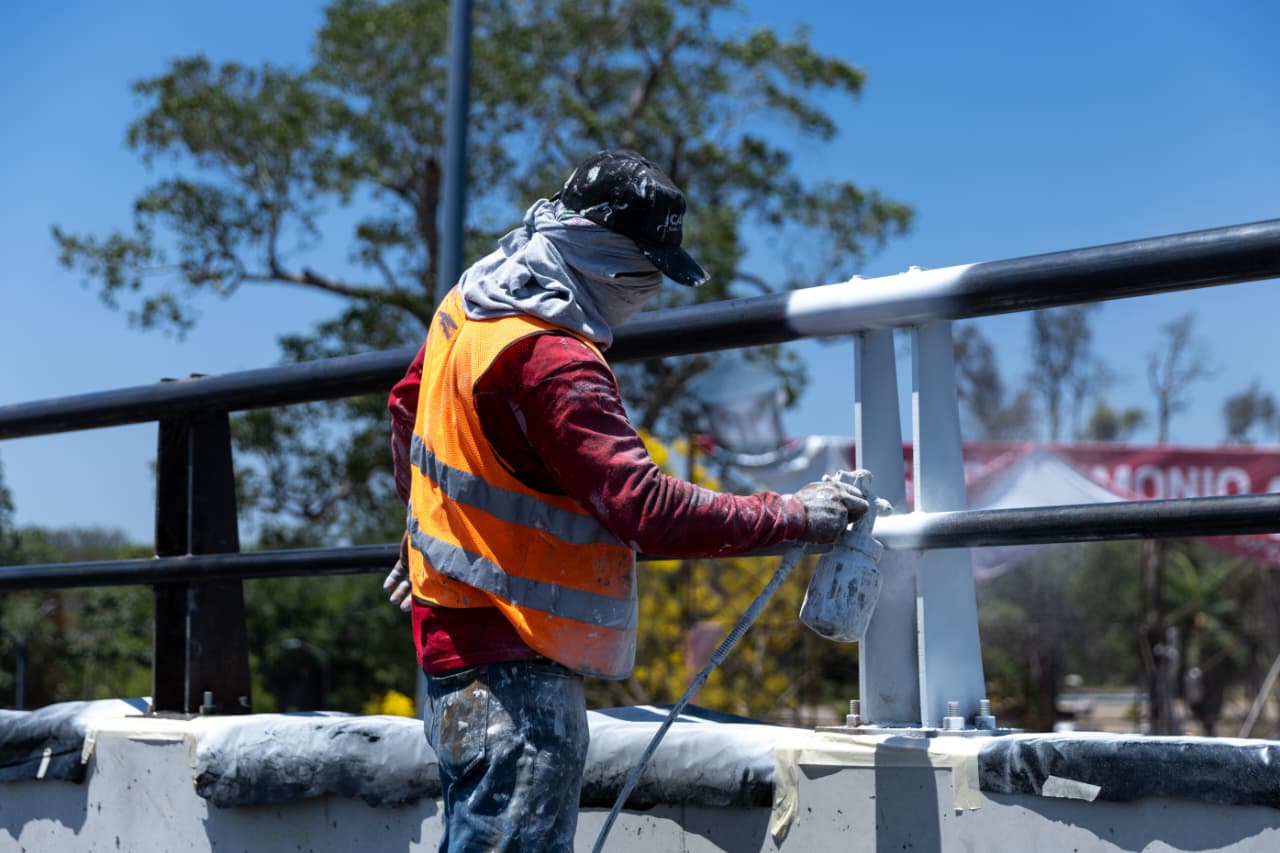 Jesús Esteva informó que el Arco Sur está esperando unos aisladores sísmicos, que ya están llegando y que en cuanto se instalen, a finales de este mismo mes de abril, se estará abriendo la circulación; la presidenta y la gobernadora recientemente supervisaron los avances de este puente.