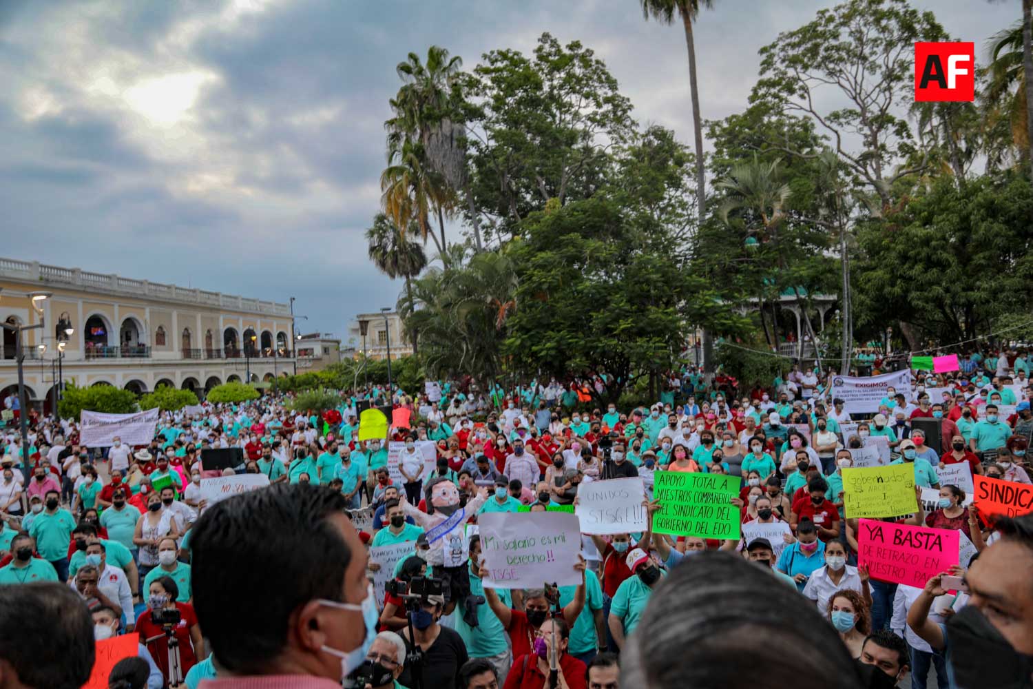 Varios miles de sindicalizados del gobierno del estado, se reunieron en 4 puntos para iniciar su marcha rumbo al jardín libertad en el centro de la capital del estado y reclamar el derecho a sus pagos salariales que, hasta ahora, se han detenido por un mes.