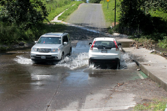 Colima.- Levemente rebasado quedó el paso peatonal del vado que se localiza por la calle Miguel de Cervantes, en la colonia Real de Vista Hermosa; los restos de ramas y piedras que el cauce del arroyo ha arrastrado generan que el agua corra por arriba de la banqueta.