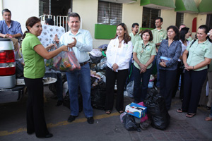 Esto, luego de recibir despensas y prendas de vestir por parte del Sindicato de Trabajadores al Servicio del Gobierno del Estado (STSGE), encabezado por su secretario general, Víctor Jacobo Vázquez Cerda.