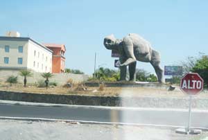 El pasto de la glorieta donde se encuentra la Figura Obscena, ubicada al norte de la ciudad, se encuentra seco, lo cual no da una buena imagen a los visitantes que arriban por el llamado camino real de Colima.