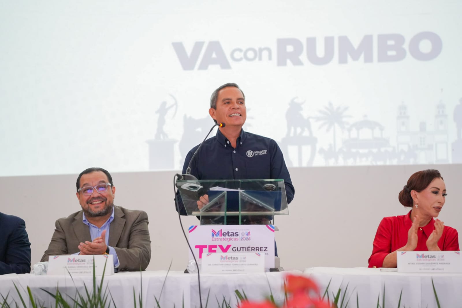 VILLA DE ÁLVAREZ.- El Rector de la Universidad de Colima, Christian Torres Ortiz Zermeño, reconoció a la Presidenta Tey Gutiérrez Andrade por su apertura a la revisión externa del quehacer gubernamental en Villa de Álvarez, pues por cuarto año consecutivo la Máxima Casa de Estudios Colimense auditará el cumplimiento de las Metas Estratégicas del Programa de Gobierno, en este caso las de 2026.