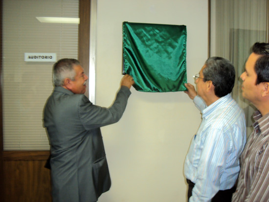 Colima.- El rector Ramón Arturo Cedillo Nakay develó la placa del Auditorio del Centro de Estudios e Investigaciones Sobre la Cuenca del Pacífico, el cual lleva el nombre del doctor Fernando Alfonso Rivas Mira en reconocimiento a su trayectoria, además de su gestión para la existencia y continuidad de este centro que fundó hace 23 años.