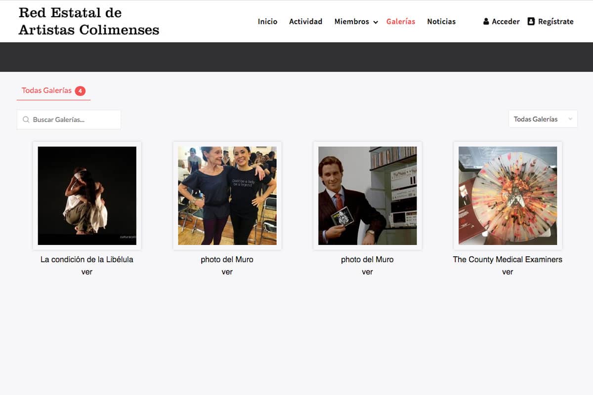 La página cuenta con cinco apartados: inicio, actividad, miembros, galerías y noticias. En el primero la secretaria de Cultura Oriana Zaret da una bienvenida a los usuarios, en la segunda se muestra toda la actividad que se genera en la plataforma. La tercera desglosa a los usuarios por área artística, la cuarta muestra todas las galerías fotográficas existentes y en noticias se compartirán actualizaciones informativas o convocatorias del área.