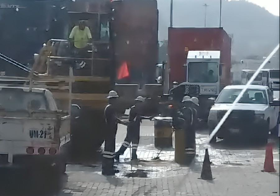 Manzanillo.- La mañana de este viernes 1 de septiembre se produjo un incidente dentro del puerto de Manzanillo luego de que una camioneta derramó aceite de acuerdo a fuentes navieras.