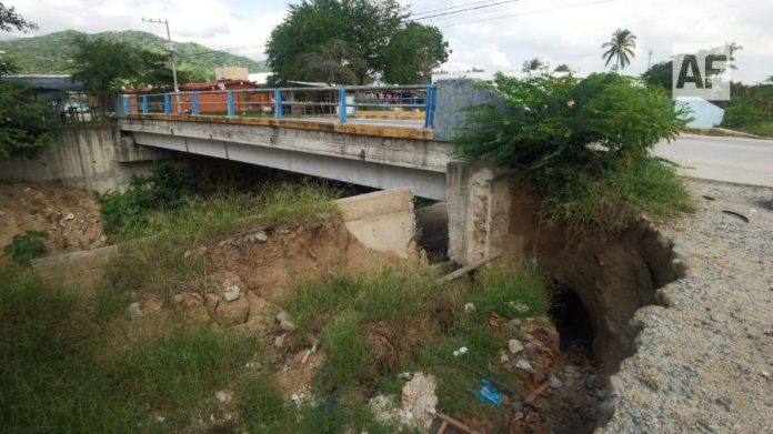 MANZANILLO.- Vecinos del fraccionamiento Vista del Mar, en la delegación Santiago, al norte de Manzanillo, denunciaron la aparición de socavones en el puente de acceso a esta zona, situación que —advirtieron— pone en riesgo la estructura y el tránsito vehicular.