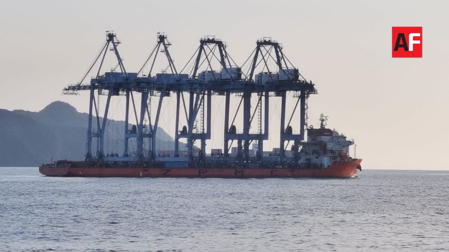 La maquinaria, conocida comúnmente como grúas de pórtico, es trasladada a bordo de la barcaza especializada Zhen Hua 37, con destino a puertos del continente asiático. El buque permanece fondeado en la bahía de Manzanillo y se prevé que zarpe la mañana de este viernes 14 de noviembre.