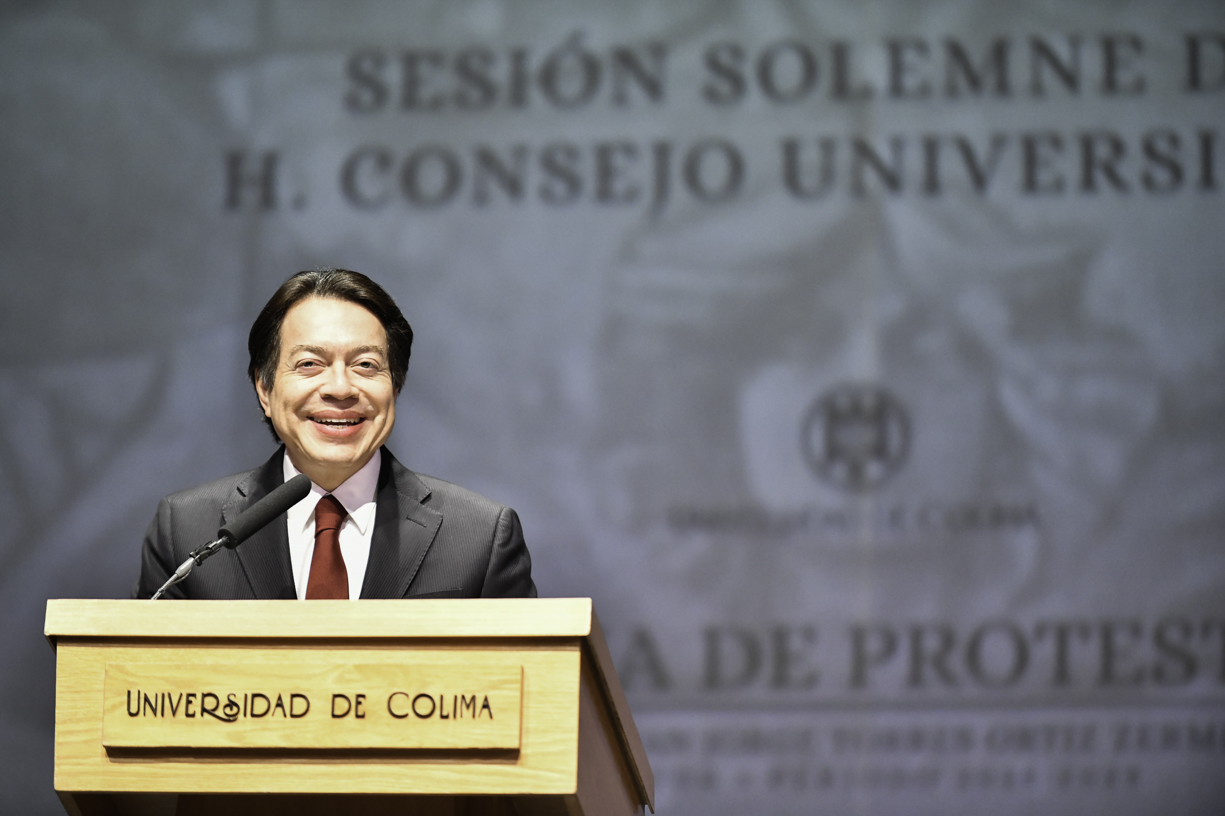 El secretario de Educación Pública, Mario Delgado, reconoció a la Universidad de Colima como un pilar esencial en la transformación del estado y felicitó al rector por su reelección. Destacó la coincidencia del programa presentado con los objetivos de la Nueva Escuela Mexicana y la visión de la presidenta Claudia Sheinbaum. “No podríamos explicar el desarrollo y la evolución de nuestro Estado sin la presencia fundamental de la Universidad de Colima, que seguirá siendo un motor de transformación para el estado y México”.