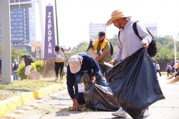 Las direcciones de Mejoramiento Urbano y Aseo Público de Zapopan recolectaron 41 toneladas de basura; la limpieza inició conforme avanzaba el contingente.