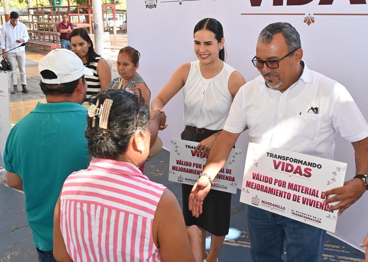 Manzanillo.- A través del programa Transformando Vidas, la presidenta municipal de Manzanillo, Rosa María Bayardo Cabrera, realizó la entrega de materiales para el mejoramiento de viviendas en beneficio de 34 familias manzanillenses.