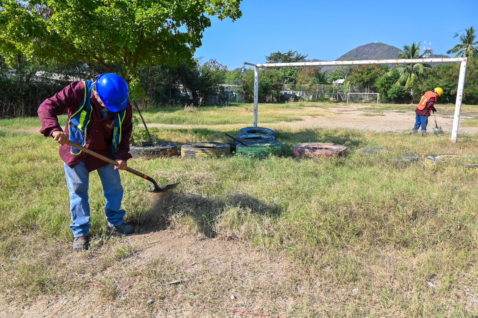 Manzanillo.- La presidenta municipal de Manzanillo, Rosa María Bayardo Cabrera, dio inicio a los trabajos de rehabilitación del espacio deportivo de la colonia Libertad, ubicada en el centro del municipio, con una inversión de 1.3 millones de pesos, que permitirá rescatar este lugar del abandono y devolverlo a la comunidad.