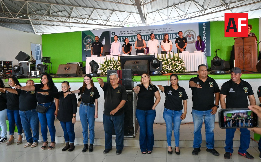 Manzanillo.- La presidenta municipal de Manzanillo, Rosa María Bayardo Cabrera, asistió al informe de labores del Sindicato de Trabajadores al Servicio del Ayuntamiento, del DIF y de los Organismos Descentralizados del Municipio (STSADODM), encabezado por su secretaria general, Vitnia Peña Melgoza.